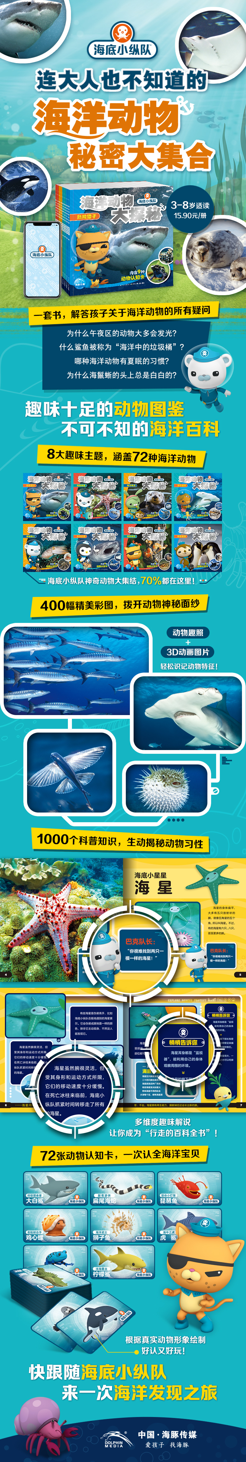 海洋动物世界精彩万分,快翻开《海底小纵队·海洋动物大探秘》,跟随海底小纵队一起去感受海洋生命的神奇魅力吧!
