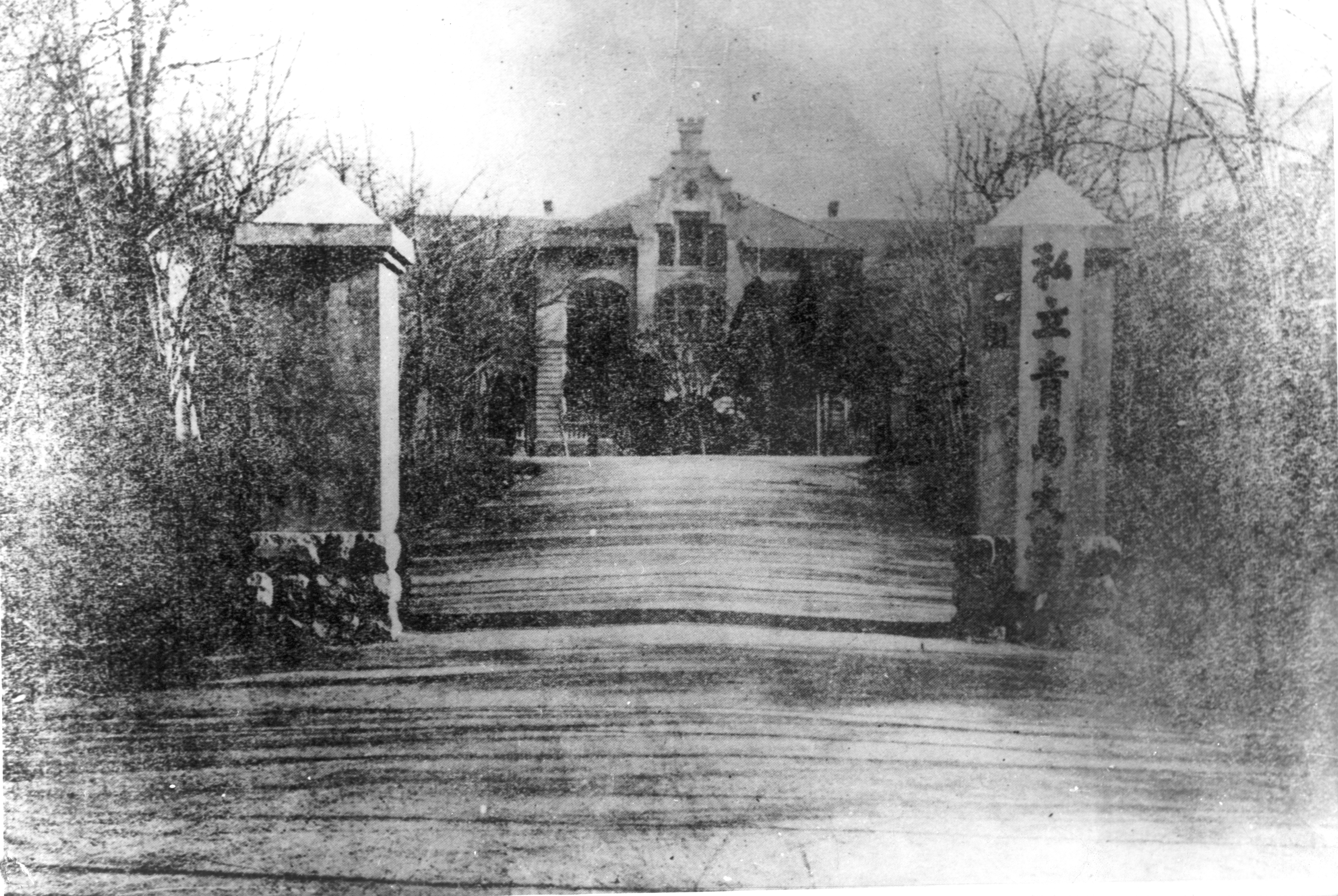 私立青岛大学校门(校门正对的建筑是今天中国海洋大学鱼山校区海洋馆)