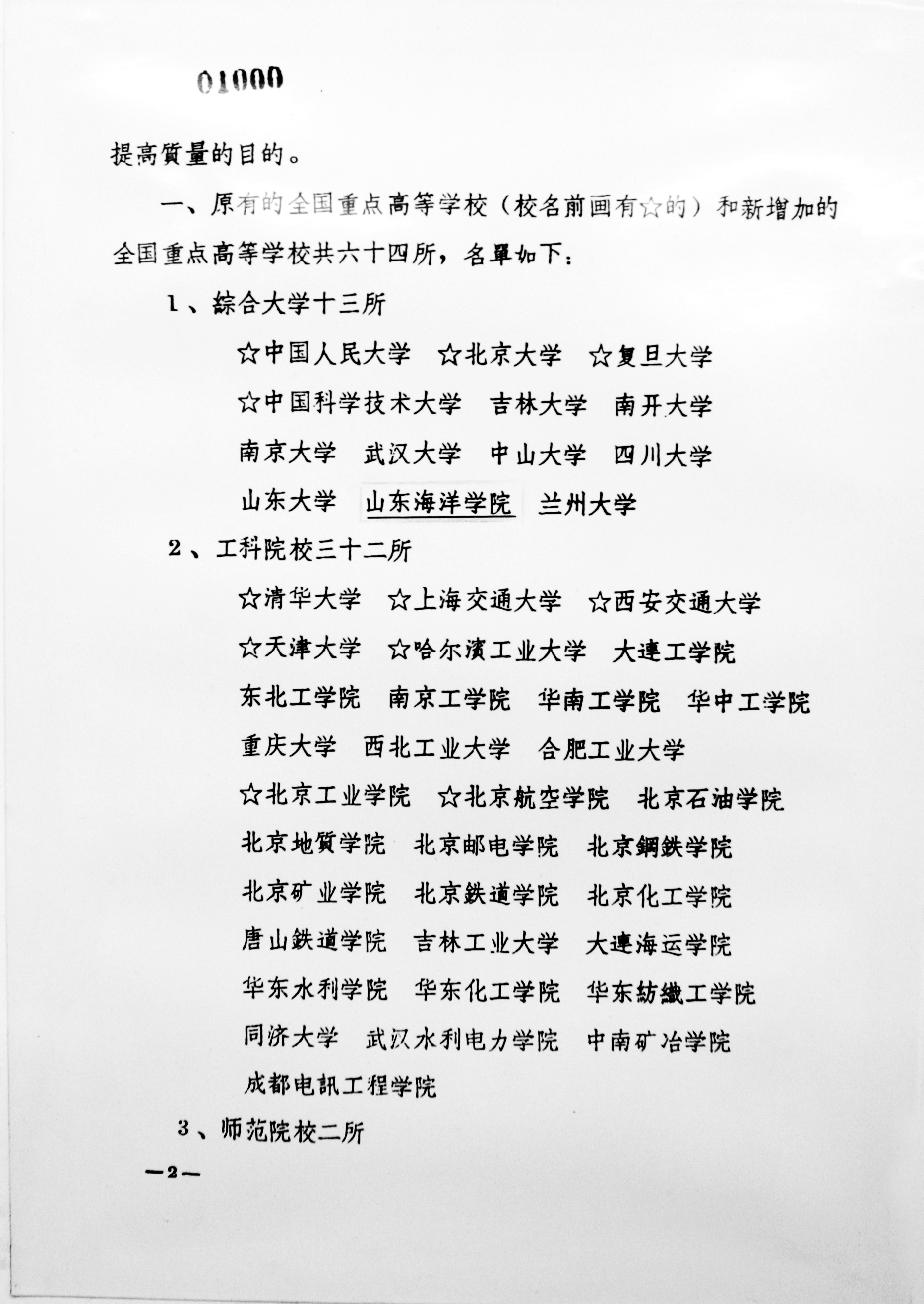 1960年10月,在《中共中央关于增加全国重点高等学校的决定》中,列出了64所全国重点高校,山东海洋学院被列为13所综合性大学之一。由此,学校步入了在曲折中不断开创特色发展道路的历史新阶段。